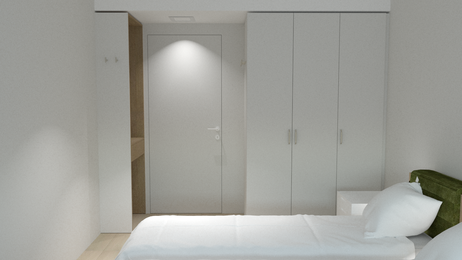 The apartment is a private 2-room suite suitable for up to 4 people. The apartment includes two double rooms, a kitchen, a toilet, and a shower. The rooms are equipped with single beds, wardrobes, desks, and bedside tables—everything needed for resting, studying, or working. The fully equipped kitchen includes all necessary appliances, dishes, and cooking utensils.